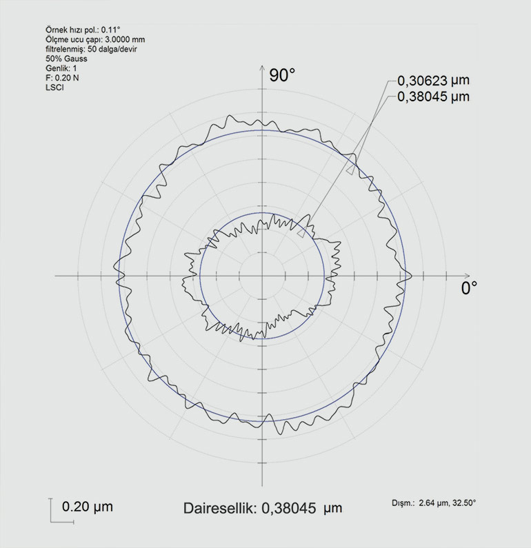Müşteri ihtiyaçlarının karşılanması açısından imalat teknolojileri için kullanılan "hassas imalat", "yüksek hassasiyet" ve "ultra hassasiyet" gibi terimler tek başlarına; daha fazla ayrıntı olmaksızın bir şey ifade etmemektedir. Bu nedenle, bir imalatçının yüksek hassiyetli talaşlı imalat kapasitesini değerlendirmek oldukça zordur. Yanda verilen fotograf ve analizler İmtek ultra hassas talaşlı imalat kapasitesini göstermek açısında oldukça önemlidir. İlk resimde, 100 μm çap farkı ile büyüyen silindirlerden oluşan bir paslanmaz çelik parça görülmektedir. İkinci resimde ise en dış silindirin çapı, operatorun 100 μm çapındaki saç teli ile karşılaştırılmalı olarak verilmiştir. Son resim ise son iki silindirde yapılan dairesellik/silindiriklik öçlümlerini göstermektedir:±0.15 ve ±0.19 μm.